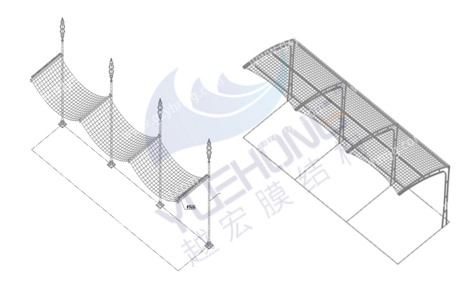 越宏膜結(jié)構(gòu)廠家的膜結(jié)構(gòu)車棚是由鋼結(jié)構(gòu)和膜材組成,分別有張拉式膜結(jié)構(gòu)、索膜結(jié)構(gòu)、骨架式膜結(jié)構(gòu)、空間結(jié)構(gòu)式等供選擇,根據(jù)不同場景進(jìn)行設(shè)計(jì)出個(gè)性化膜結(jié)構(gòu)。